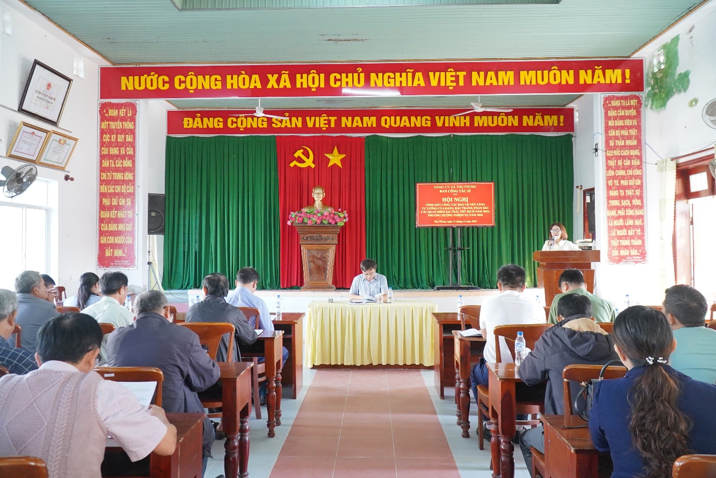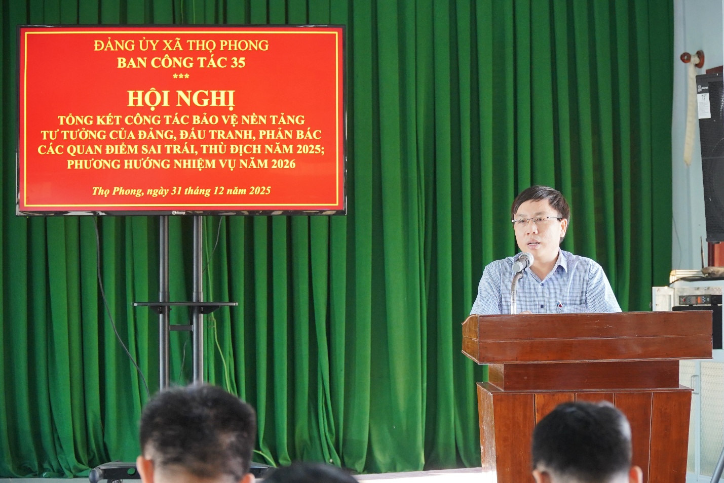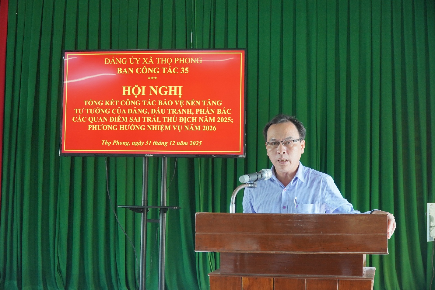 Sáng ngày 31/12/2025, Ban Công tác 35 Đảng ủy xã Thọ Phong tổ chức Hội nghị tổng kết công tác bảo vệ nền tảng tư tưởng của Đảng, đấu tranh, phản bác các quan điểm sai trái, thù địch năm 2025; phương hướng nhiệm vụ năm 2026. Đồng chí Bùi Tấn Vĩ – Phó Bí thư Thường trực Đảng ủy xã Thọ Phong chủ trì Hội nghị.