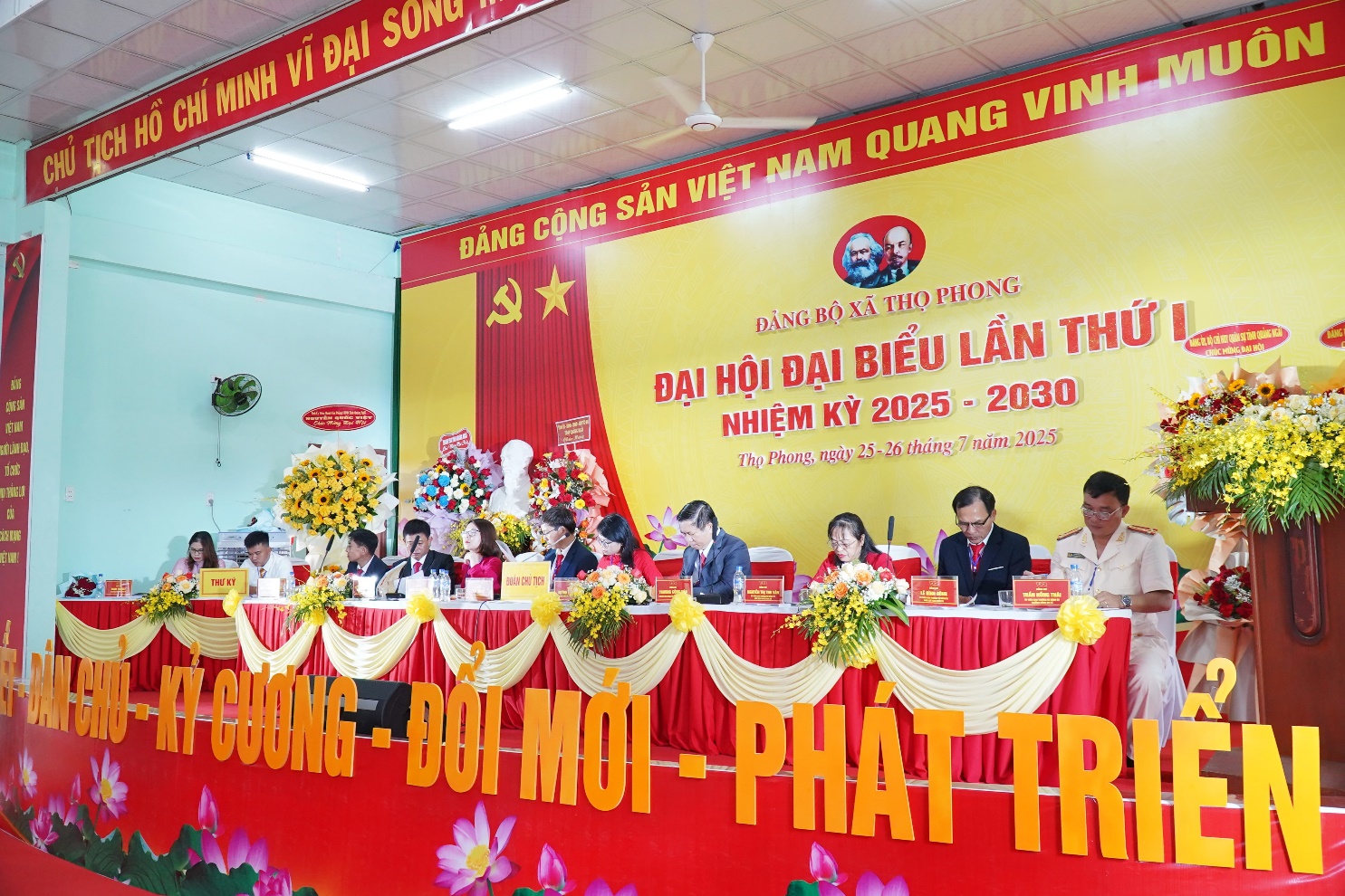 Sáng ngày 26/7/2025, Đảng bộ xã Thọ Phong long trọng tổ chức Đại hội đại biểu Đảng bộ xã lần thứ nhất, nhiệm kỳ 2025 – 2030, với phương châm: “Đoàn kết - Dân chủ - Kỷ cương - Đổi mới - Phát triển”.