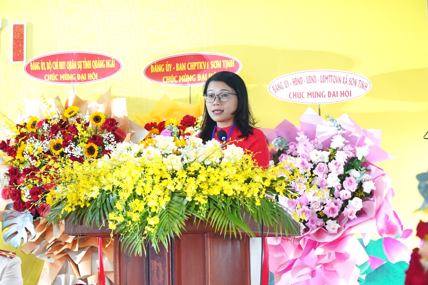 | Đồng chí Huỳnh Thị Sương – Bí thư Đảng ủy, Chủ tịch HĐND xã phát biểu |