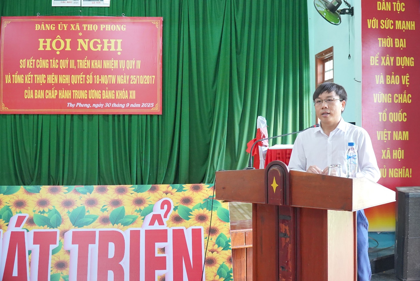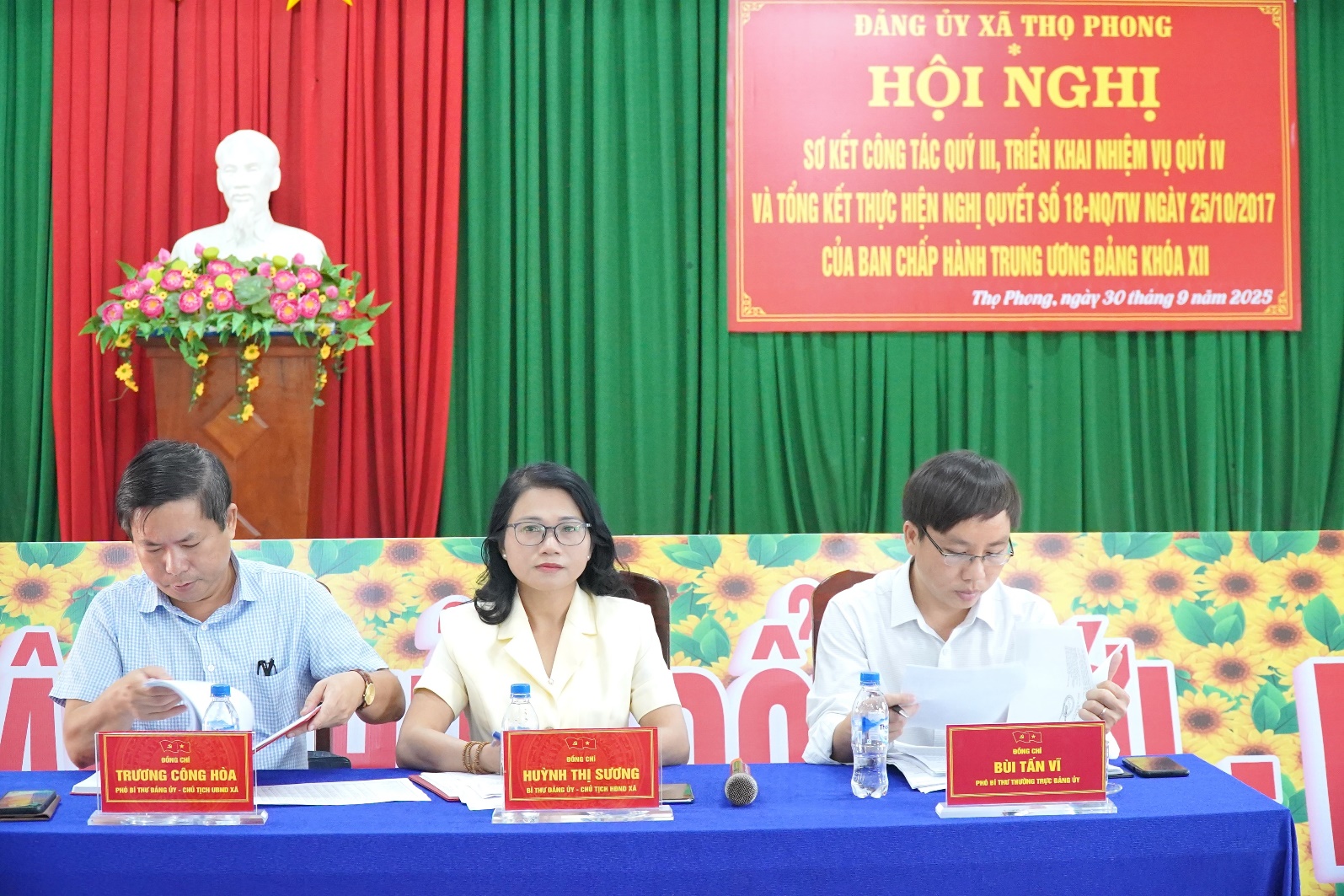 ĐẢNG ỦY XÃ THỌ PHONG HỘI NGHỊ SƠ KẾT CÔNG TÁC QUÝ III, TRIỂN KHAI NHIỆM VỤ QUÝ IV NĂM 2025 VÀ TỔNG KẾT NGHỊ QUYẾT SỐ 18-NQ/TW
