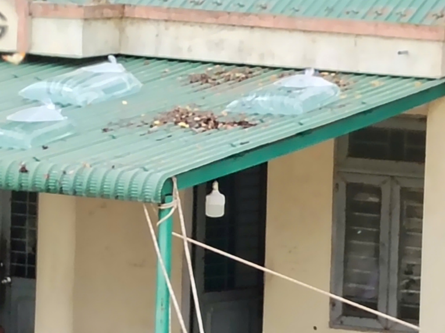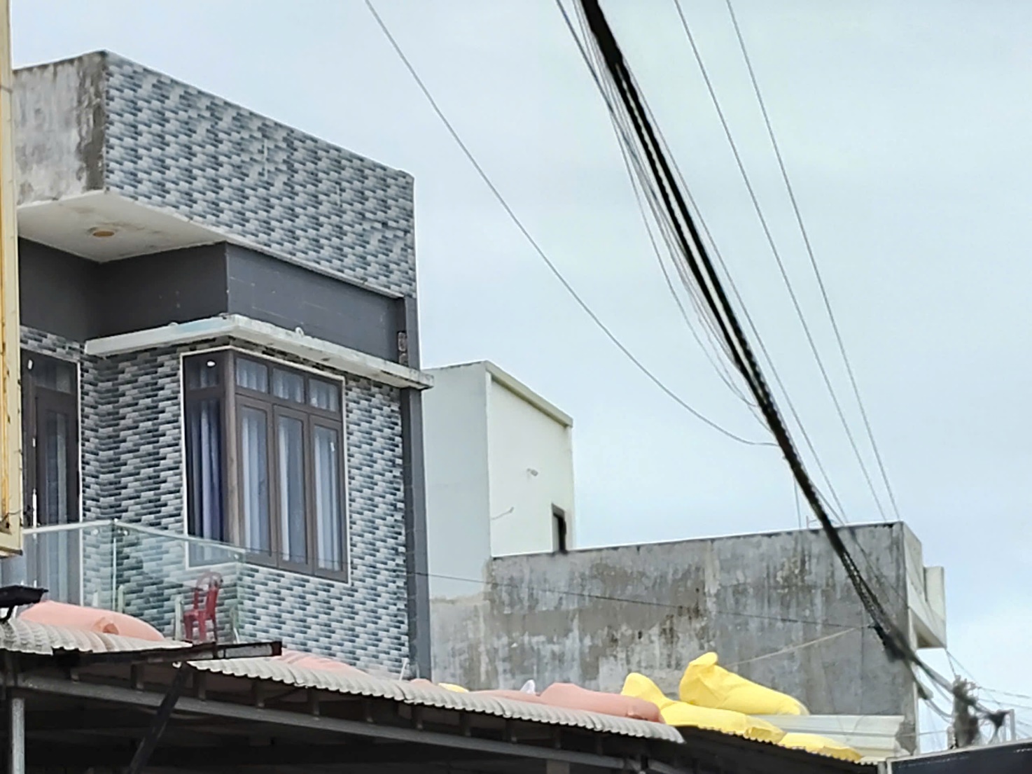Bao cát được đè trên mái nhằm hạn chế thiệt hại do bão đổ bộ |