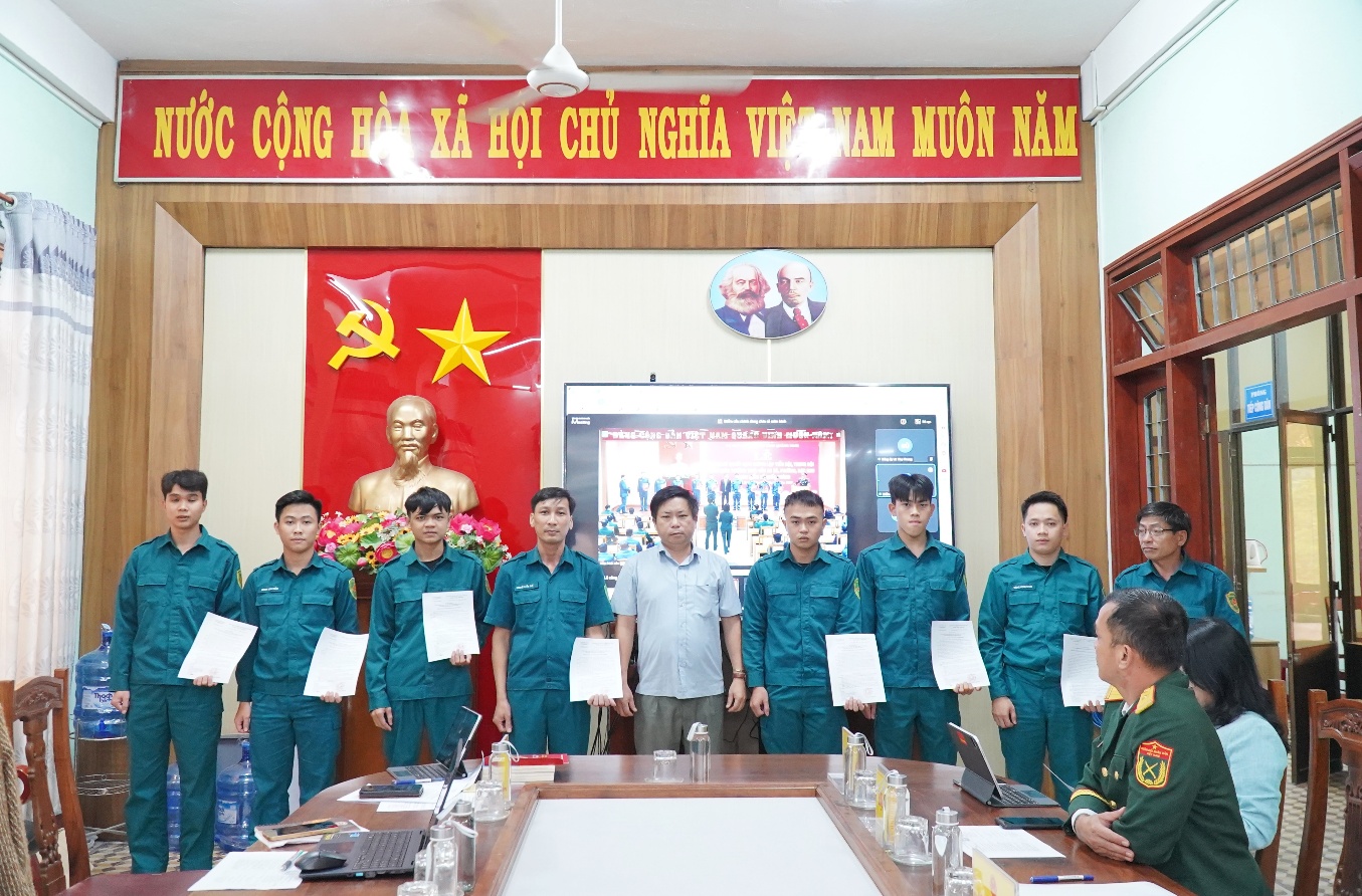 Tại điểm cầu xã Thọ Phong, đồng chí Trương Công Hòa – Phó Bí thư Đảng ủy, Chủ tịch UBND xã đã trao Quyết định của UBND xã về việc tuyển chọn công dân thực hiện nghĩa vụ tham gia Dân quân thường trực trong thời bình cho 08 đồng chí chiến sỹ và 01 đồng chí Tiểu đội trưởng. Đồng chí Nguyễn Văn Trung – Chỉ huy trưởng Ban Chỉ huy Quân sự xã Thọ Phong đã trao Quyết định của Ban Chỉ huy Quân sự xã về việc bổ nhiệm đồng chí Nguyễn Văn Thể giữ chức vụ Tiểu đội trưởng Dân quân thường trực xã Thọ Phong. Quyết định có hiệu lực thi hành kể từ ngày 01/01/2026.