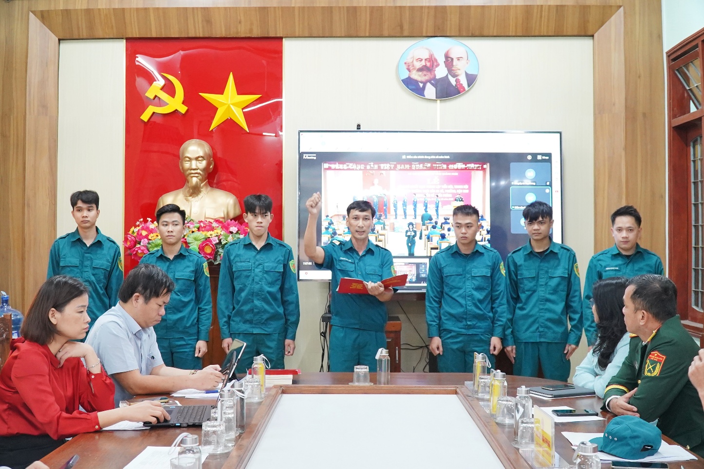 XÃ THỌ PHONG DỰ TRỰC TUYẾN LỄ CÔNG BỐ QUYẾT ĐỊNH THÀNH LẬP TIỂU ĐỘI, TRUNG ĐỘI DÂN QUÂN THƯỜNG TRỰC CỦA 85 XÃ, PHƯỜNG, ĐẶC KHU TỈNH QUẢNG NGÃI